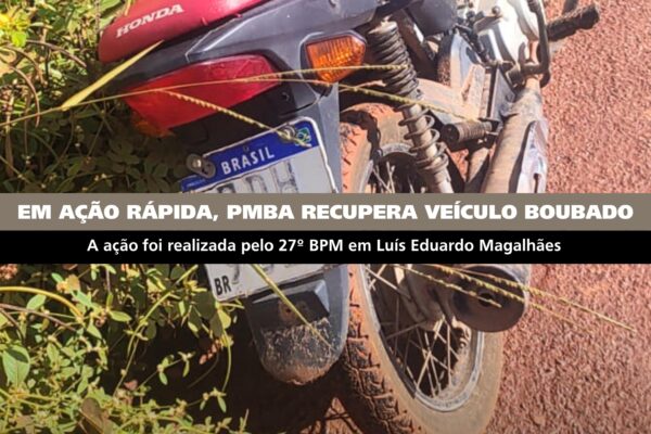 EM AÇÃO RÁPIDA, 27º BPM RECUPERA MOTOCICLETA ROUBADA EM LUÍS EDUARDO MAGALHÃES Na manhã desta sexta-feira, 10, em uma ação...