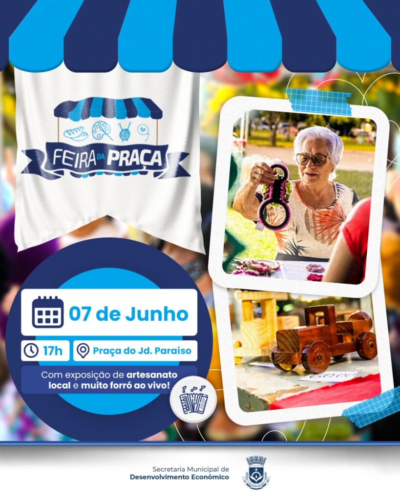 Neste sábado, 7 de junho, a partir das 17h, no bairro Jardim Paraíso, a Prefeitura de Luís Eduardo Magalhães, por meio da Secretaria Municipal de Desenvolvimento Econômico, promove mais uma edição da Feira da Praça.