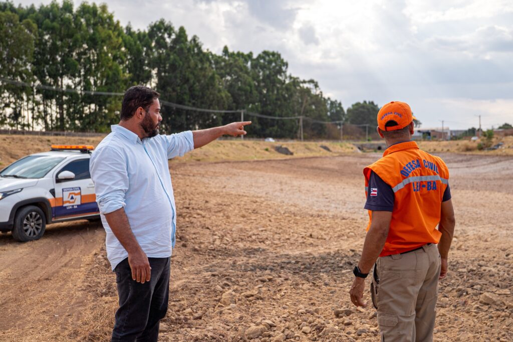 Na tarde desta quarta-feira (24), o secretário de Infraestrutura e Urbanismo, Guelson Filho, e o diretor de Defesa Civil de Luís Eduardo Magalhães, Wanderson Santana, realizaram uma visita técnica à principal bacia de contenção do município, localizada no bairro Mimoso 1.