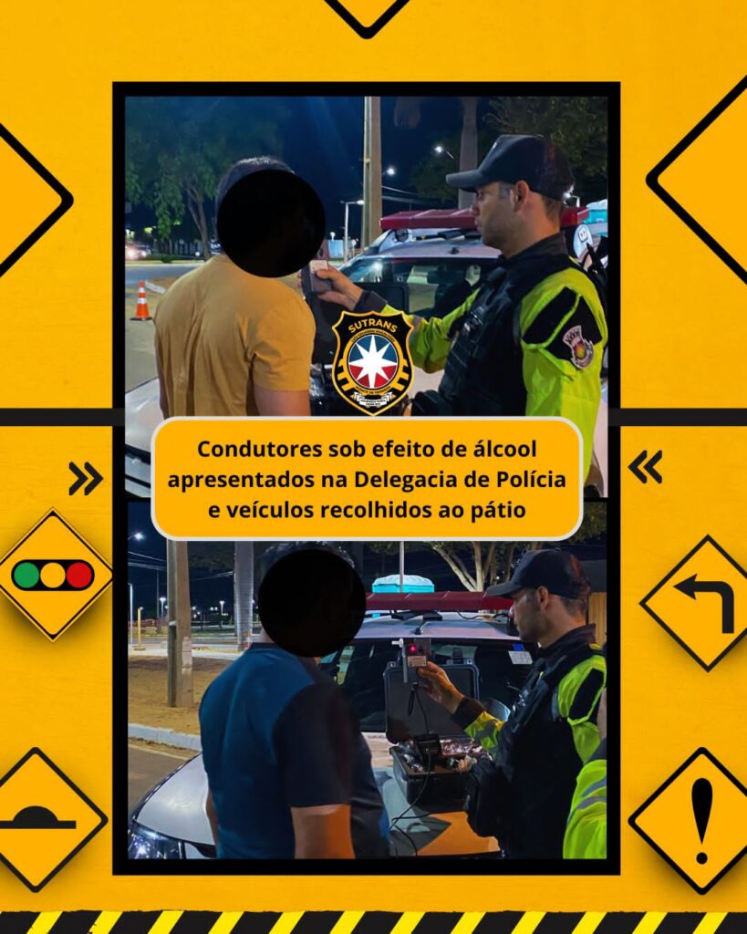 • Condutores sob efeito de álcool apresentados na Delegacia de Polícia e veículos recolhidos ao pátio;