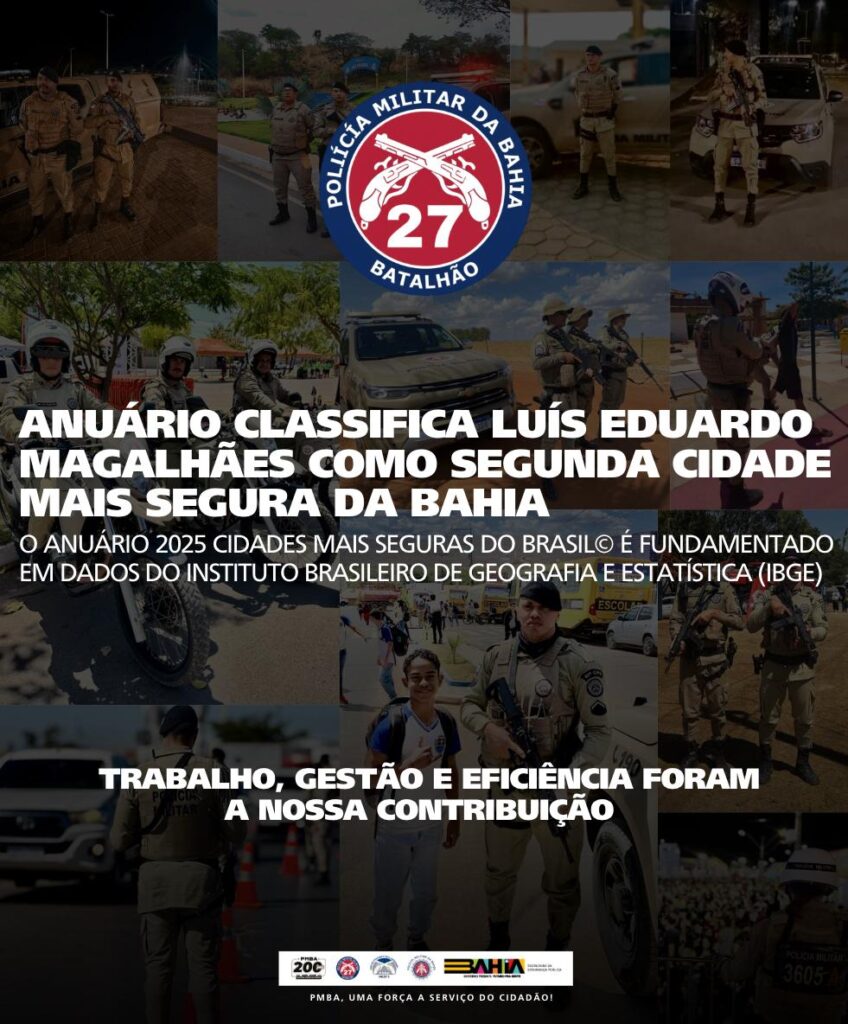O município de Luís Eduardo Magalhães, no oeste baiano, consolidou sua posição como um polo de desenvolvimento e qualidade de vida ao ser classificado como a segunda cidade mais segura da Bahia para se viver de acordo com o Anuário 2024 Cidades Mais Seguras do Brasil da plataforma MySide, o que reflete o sucesso das ações de segurança pública e, em particular, da atuação estratégica e integrada da então 85ª Companhia Independente de Polícia Militar, hoje 27º Batalhão de Polícia Militar.