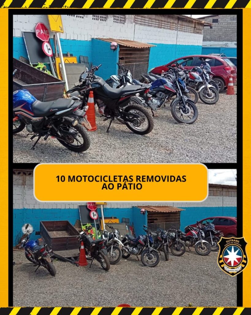 • 10 motocicletas removidas ao pátio;