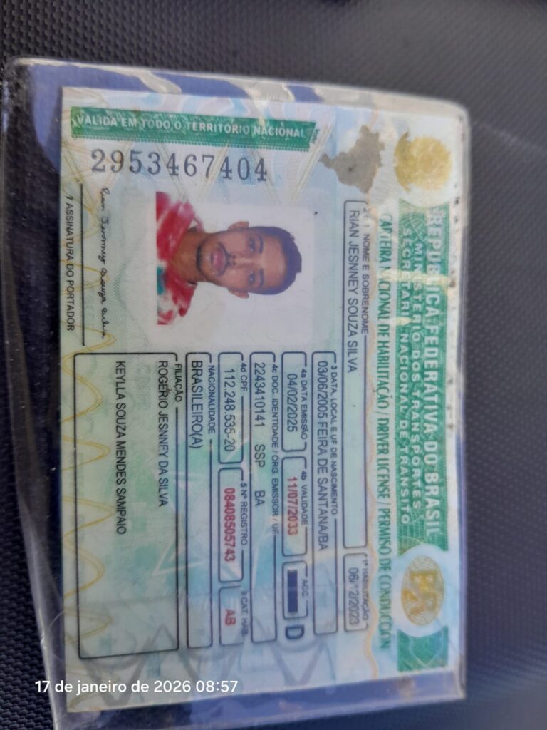 A Polícia Civil de Luís Eduardo Magalhães, iniciou investigações na tentativa de identificar o autor de um crime no Jardim Paraiso. No local além de objetos pessoais foi encontrado uma CNH em nome de RIAN JESNNEY DOUZA SILVA, 20 anos de idade, que pode ser da vítima. Aguardando mais informações,