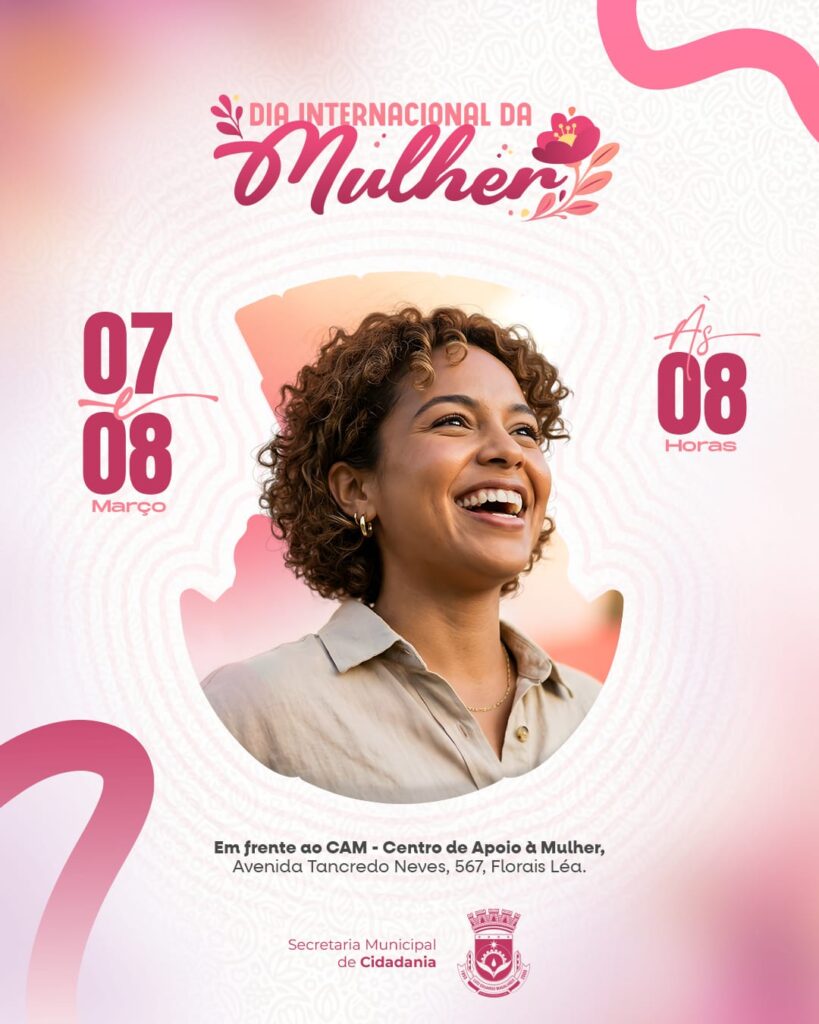Mais do que uma programação de serviços, a ação representa um gesto de reconhecimento e respeito. Que este 8 de março seja marcado não apenas por homenagens, mas por atitudes concretas de valorização, cuidado e oportunidades. Cada mulher carrega histórias de superação, dedicação e amor. A ação acontecerá em frente ao CAM, na Avenida Tancredo Neves, nº 584, bairro Florais Léa, a partir das 8h. Será um fim de semana preparado com carinho, pensado para você, mulher.