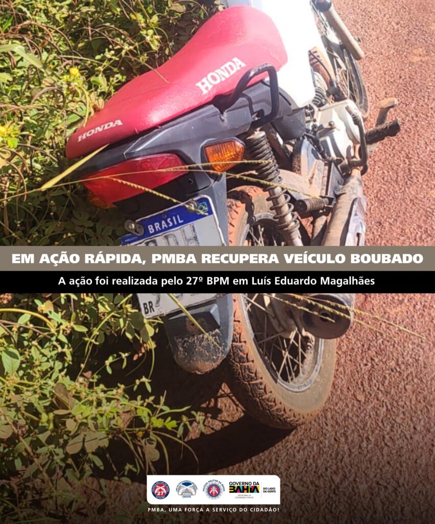 EM AÇÃO RÁPIDA, 27º BPM RECUPERA MOTOCICLETA ROUBADA EM LUÍS EDUARDO MAGALHÃES
