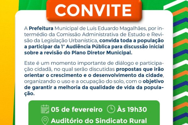 Prefeitura de Luís Eduardo Magalhães convida população para Audiência Pública sobre o Plano Diretor A Prefeitura Municipal de Luís Eduardo...