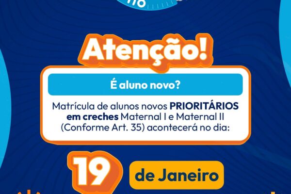Matrícula de novos alunos na rede municipal começa dia 19 de janeiro A Prefeitura de Luís Eduardo Magalhães, por meio...