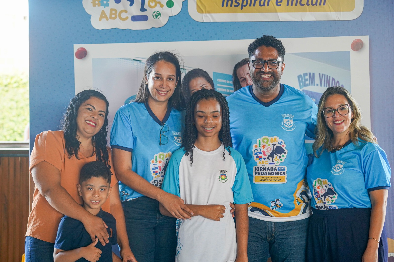 Da esquerda para a direita: A mãe de Kiara, Nardélia Pereira, o pequeno Henri Bruno. A gerente de Ensino, Adriana...