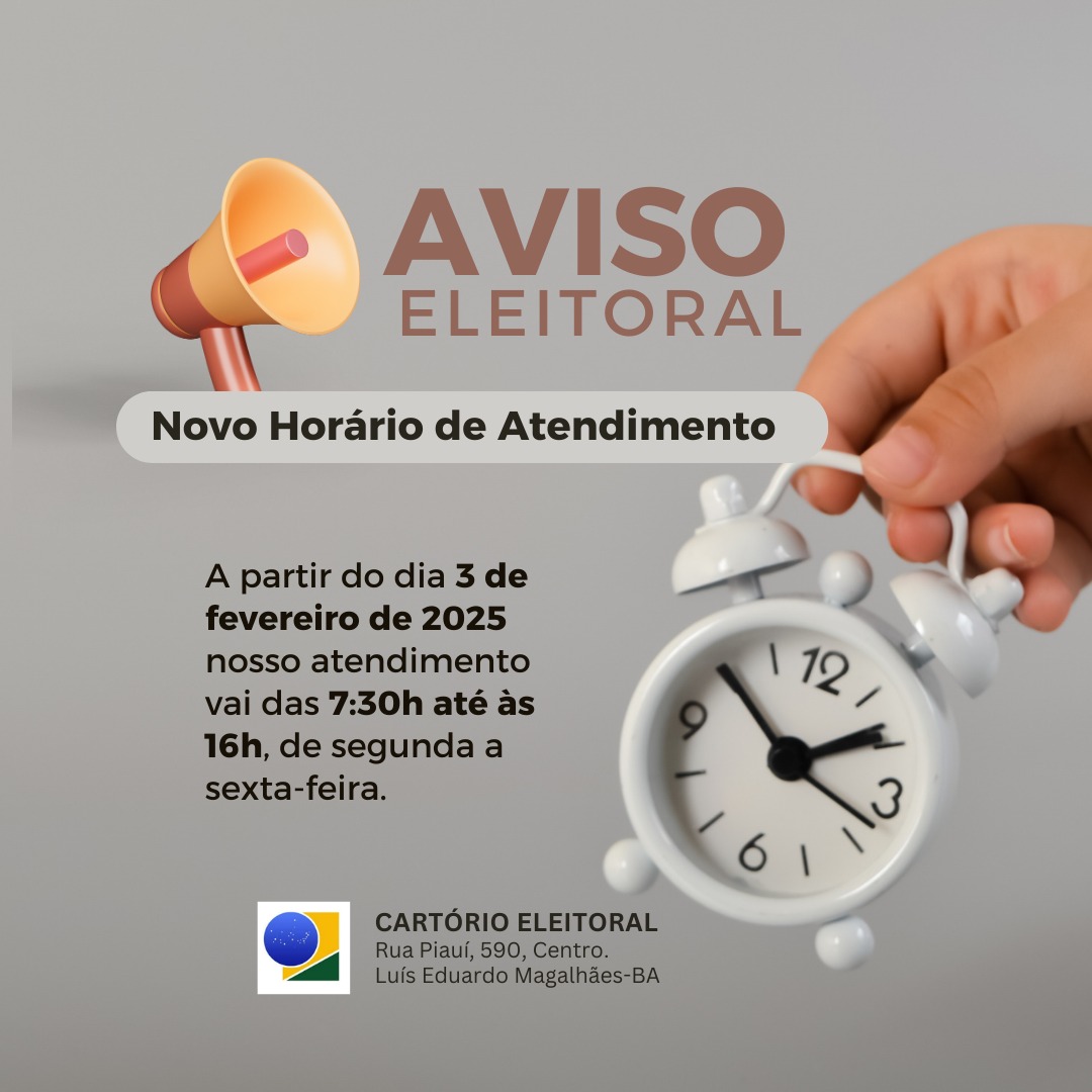 HORÁRIO DE FUNCIONAMENTO DO CARTÓRIO ELEITORAL VAI MUDAR