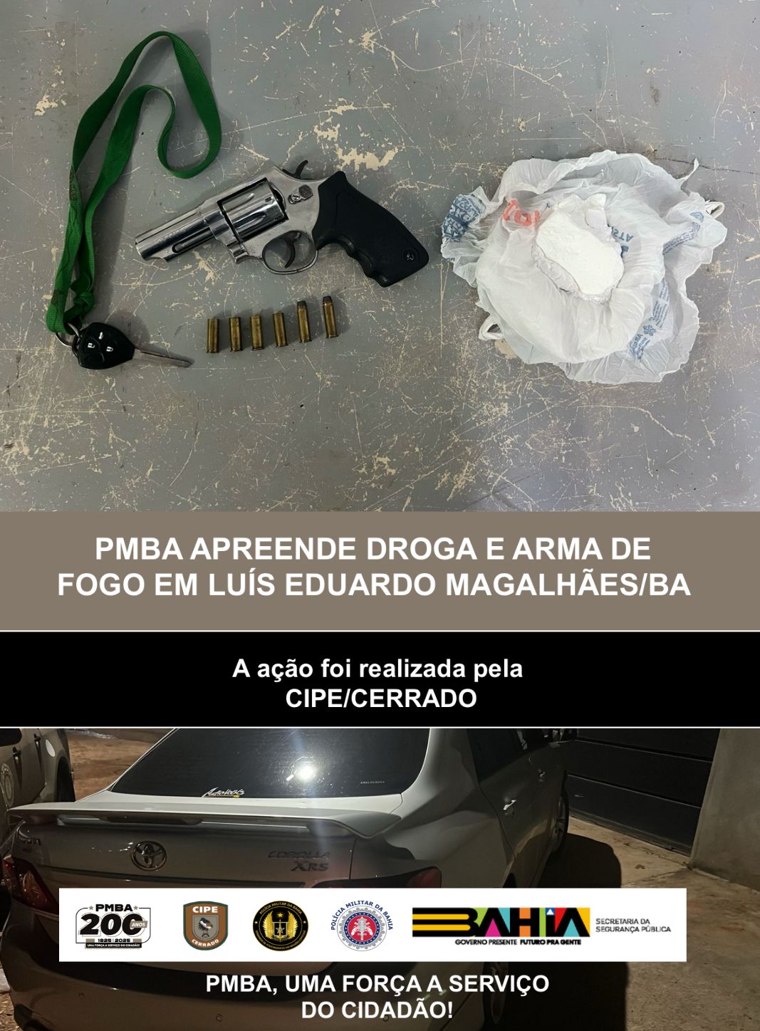 Após informações sobre um homem que utilizava um Corolla prata “esportivo” para tráfico de drogas e cobranças armadas no bairro...